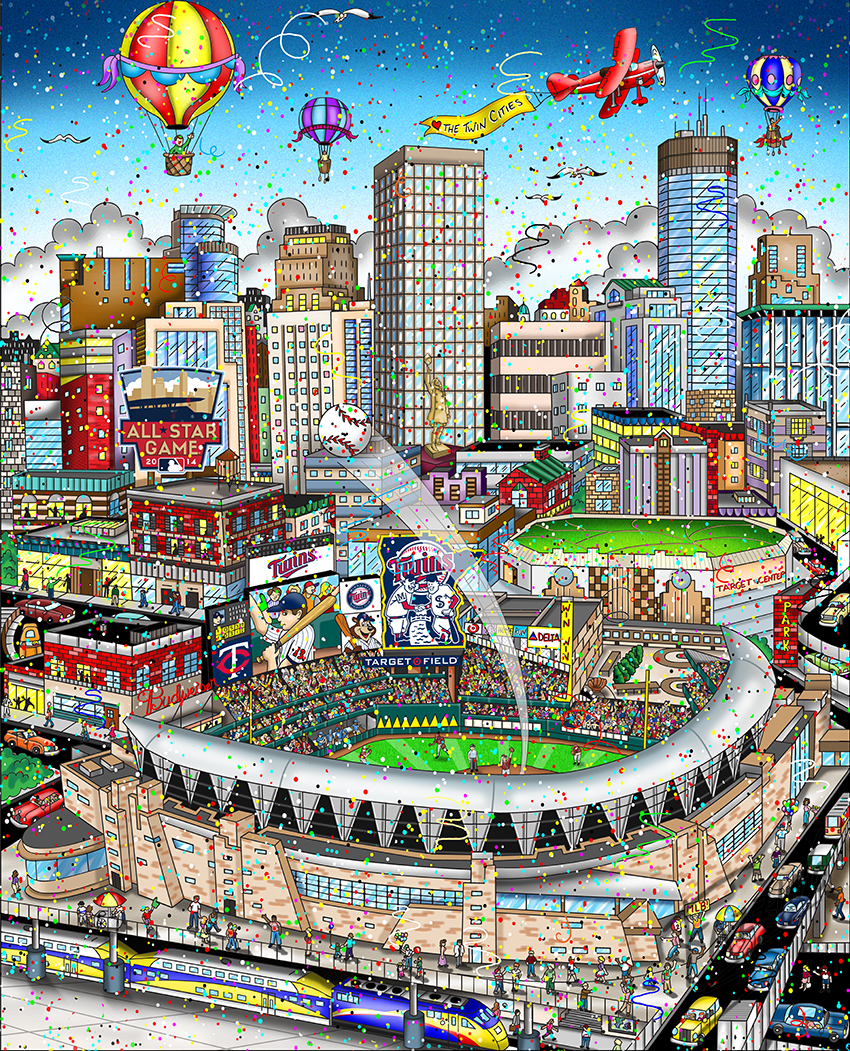As he has done for the last ten years, Charles Fazzino has put together an exceptional art collection for the 2014 Major League Baseball All-Star Game which will take place on Tuesday, July 15th a Target Field, home of the Minnesota Twins. It’s the first All-Star Game hosted by the Twins since 1985. The Major League Baseball T-Mobile All-Star Fanfestย will be held at the Minnesota Convention Center Friday, July 11th through Tuesday, July 15th . Fanfest is the largest baseball fan event in the world. Test your arm against the game’s greatest relievers, tour an authentic dugout, see all of the World Series rings, and more! And of course, make sure you check out the Charles Fazzino All-Star Game Art Collection.
