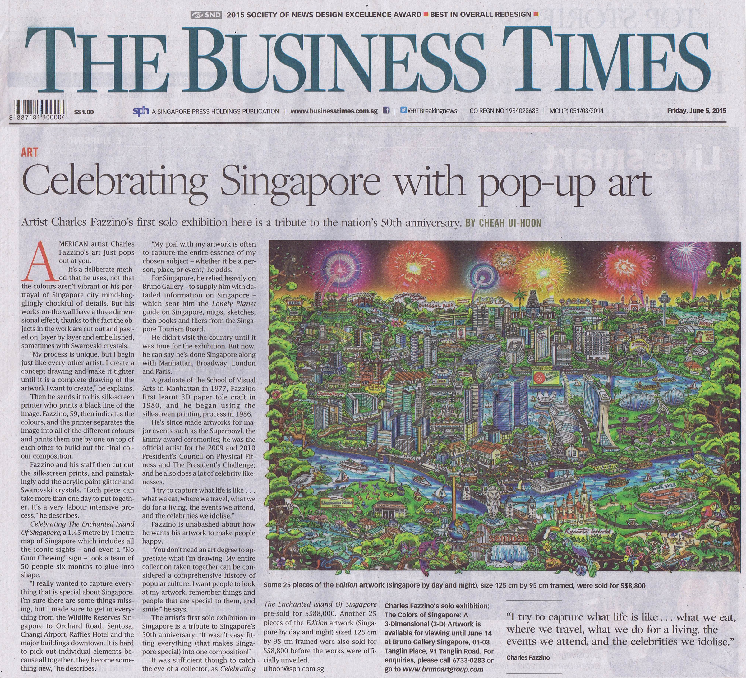 June 5, 2015 The Business Times – Celebrating Singapore with Pop-Up Art – June 5, 2015 3D Pop Art Charles Fazzino singapore Singapore Press covering the Fazzino Singapore Tour 2015 The Business Times -Celebrating Singapore with Pop-Up Art – Friday June 5th 2015 This entry was posted in 3D Pop Art Charles Fazzino singapore LinkedInThis field is for validation purposes and should be left unchanged.Enter Your Email* Δ