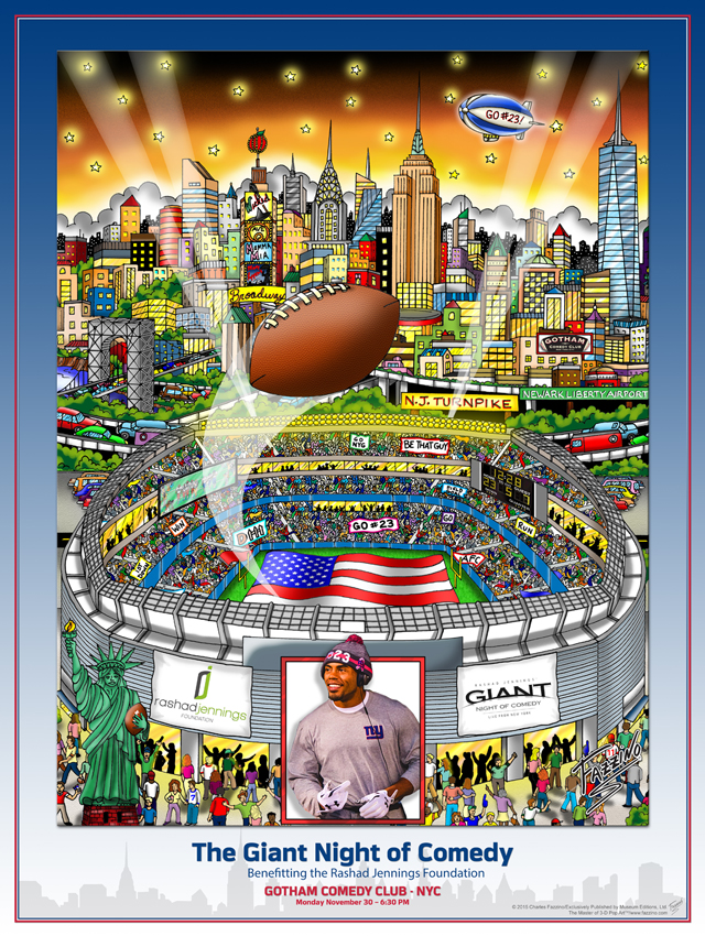 On Monday, November 30th, NY Giant Rashad Jennings will host the 1st Annual “GIANT Night of Comedy” Team Fundraiser Reception & Show and he has asked Charles Fazzino to commemorate the event with a very special artwork. The event will …
