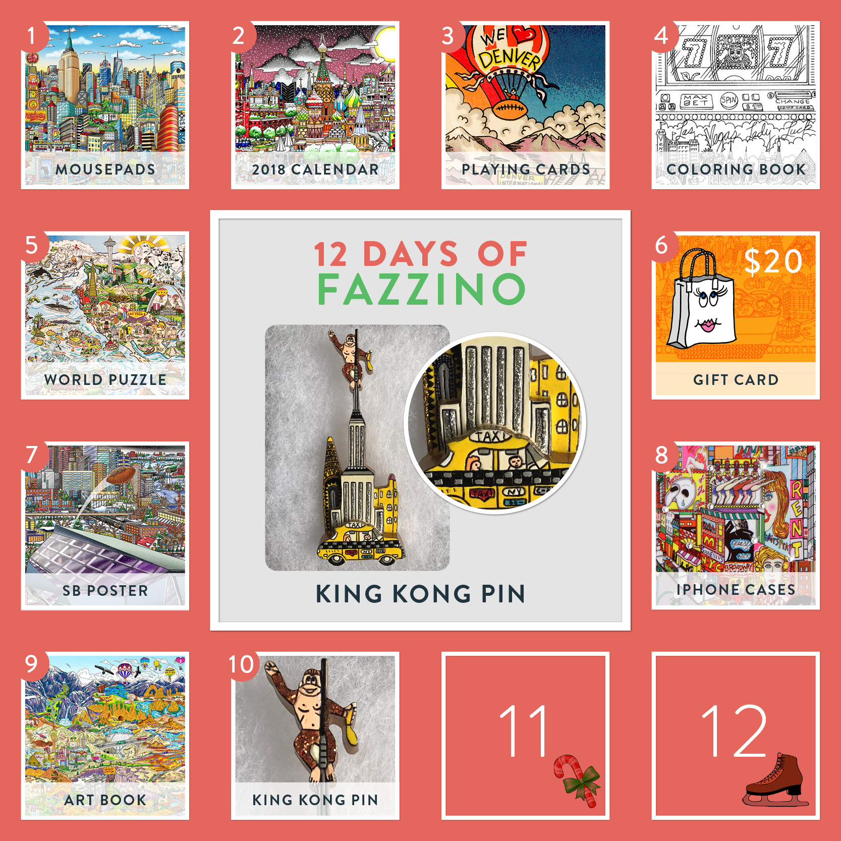 Today’s Featured Gift of the Day – NYC KING KONG COLLECTORS PIN On the Third Day of Fazzino, we offer 20% off a NYC King Kong Collectors Pin! Regular Price: $60.00 20% Off Today ONLY: $48.00 plus shipping & …