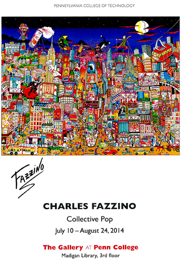 “I am proud to have my artwork shown at The Gallery at Penn College,” stated Fazzino. “I had a great time in Williamsport in February working with the kids and I’m excited to see what they’ve come up with since my visit. It will be a real treat to have their work shown along with mine. There were some very talented artists among those students.”