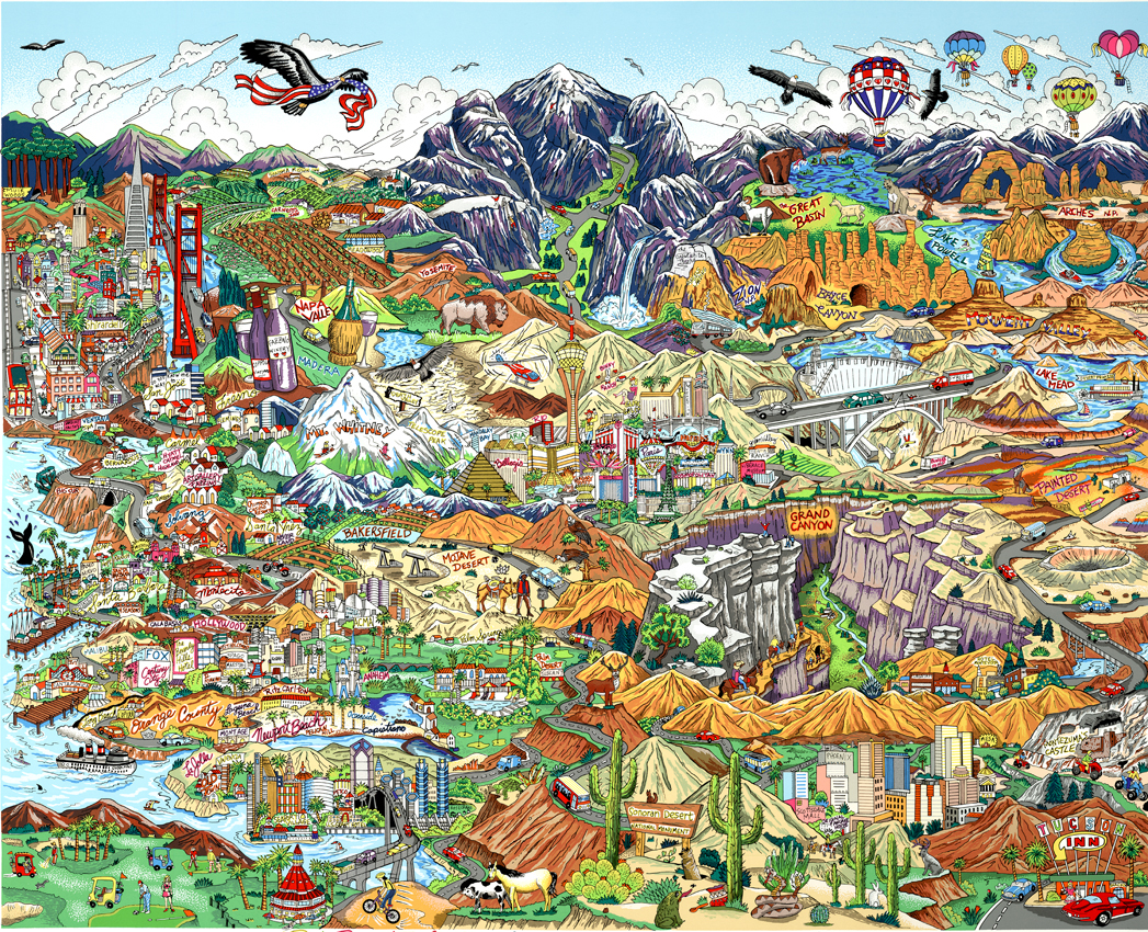 “O Beautiful for Spacious Skies” is Charles Fazzino’s contribution to celebrating America. It’s a colorful, detailed, and vibrant tour of America’s National Parks, all rendered in the quintessential Fazzino 3D style. “I love this piece,” states Fazzino. “It’s very different from the rest of my collection but i really wanted to do it. I wanted it to feel majestic and lively, a true celebration of the spirit of our country.” The working title of the piece was actually “The European Loop” because we welcome so many Europeans to our national parks during their summer holidays. Many come over and spend 6 weeks going through all or most of them, often beginning in Los Angeles and ending in Las Vegas. In the end, Fazzino decided to go with a more American-centric title because in reality, the piece celebrates American beauty and American culture.