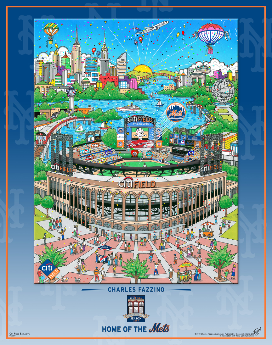 Tuesday is going to be a great day! Former Met Captain John Franco is going to join me at Citi Field for the formal unveiling of my Citi Field Commemorative Artwork! Many months ago, the Mets asked me to create a piece to celebrate the opening of the new stadium. You can see the results below. There’s a limited edition 3-D print and a limited edition, numbered (2009) poster. John and I will be signing posters and artwork after the unveiling ceremony. You’ll be able to find us outside the Mets Team Store in the Jackie Robinson Rotunda. The unveiling is scheduled for 5:20 with the signing to start right after that. I’d love to see you there. If you have tix to the game, c’mon by and say hi.