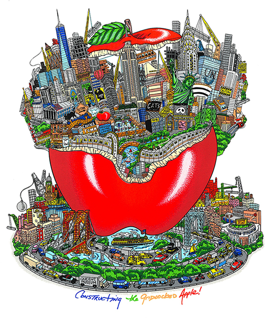 The apple is the icon with which Charles Fazzino is most closely associated. You can trace the history of this city through his decades-old collection of apples. Here are a few of the sold out limited editions from several years ago, along with two new originals.