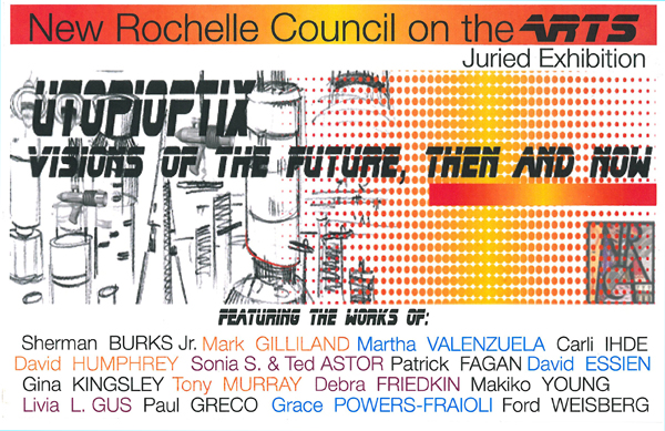 A few months ago, i blogged about the New Rochelle Arts Council of the Arts Juried Exhibition i was asked to judge titled “Utopioptix”. Last night, i met with the other two judges on the panel, Katrina Rhein and David Tobey, to evaluate the final collection. All of the artwork chosen for exhibition was hung in the Lumen Winter Gallery at the New Rochelle Public Library.