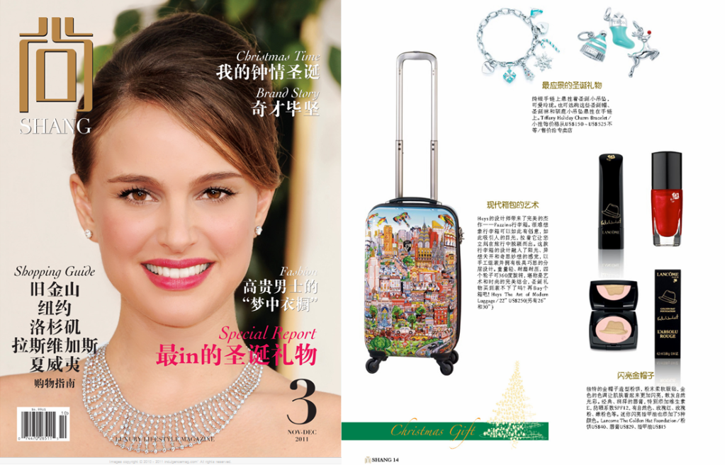 December 16, 2011 Shang Magazine – Fazzino by Heys Luggage – December 16, 2011 Charles Fazzino The Fazzino by Heys Luggage Line featured in China’s Shang Magazine. This entry was posted in Charles Fazzino X/TwitterThis field is for validation purposes and should be left unchanged.Enter Your Email* Δ