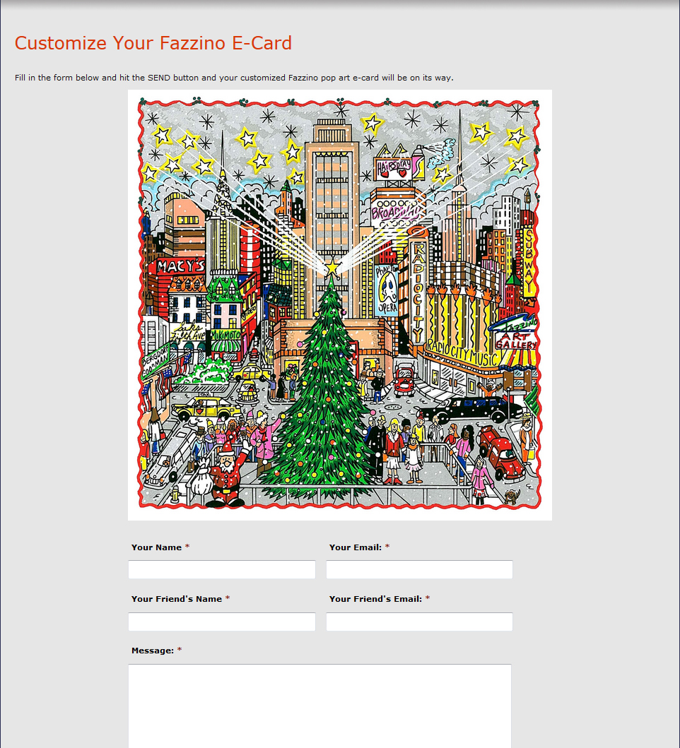 We are excited to announce our new Fazzino E-Card page! Now you can send an image by your favorite 3D pop artist with your own custom greeting. Send a Fazzino e-card to say “Happy Birthday,” “Happy Holidays,” or even just …