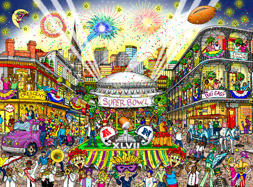 Charles Fazzino and New Orleans Saints Linebacker Jonathan Vilma unveiled Charles Fazzino’s commemorative 3D artwork for Super Bowl XLVII last night at a fundraiser for the Jonathan Vilma Foundation. The celebrity event held at Morton’s Steakhouse in downtown New Orleans …