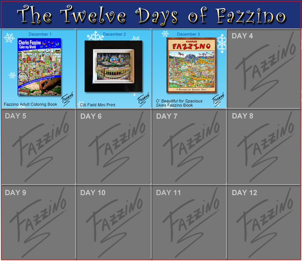 Today’s Featured Gift of the Day –A Set of 10 Fazzino Holiday Cards On the First Day of Fazzino, we offer to you…20% off a set of 10 Fazzino Holiday Cards and Envelopes. The perfect way to share your love …