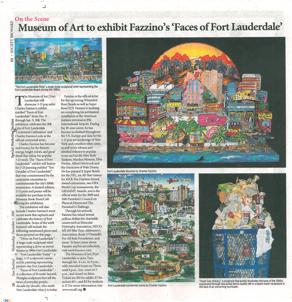 December 1, 2010 The Sun Sentinel – Fazzino’s Museum of Fort Lauderdale Exhibition – December 1, 2010 Charles Fazzino The Sun Sentinel features Fazzino on his ‘Faces of Fort Lauderdale’ Museum of Art exhibition. This entry was posted in Charles Fazzino FacebookThis field is for validation purposes and should be left unchanged.Enter Your Email* Δ