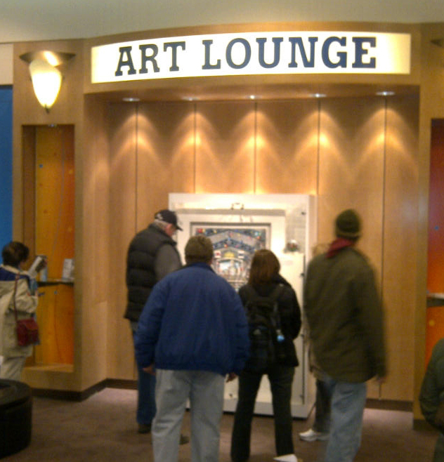 Spent my afternoon along Georgia Street in the Super Bowl Village and at the NFL Experience. I cannot believe how many people are out and about and it’s only Tuesday! I can’t even imagine what it’s going to be like this weekend. The excitement is incredible. I also visited the Huddle and saw my Super Bowl collection hanging there. The Indianapolis Arts Council did a fabulous job decorating the space.