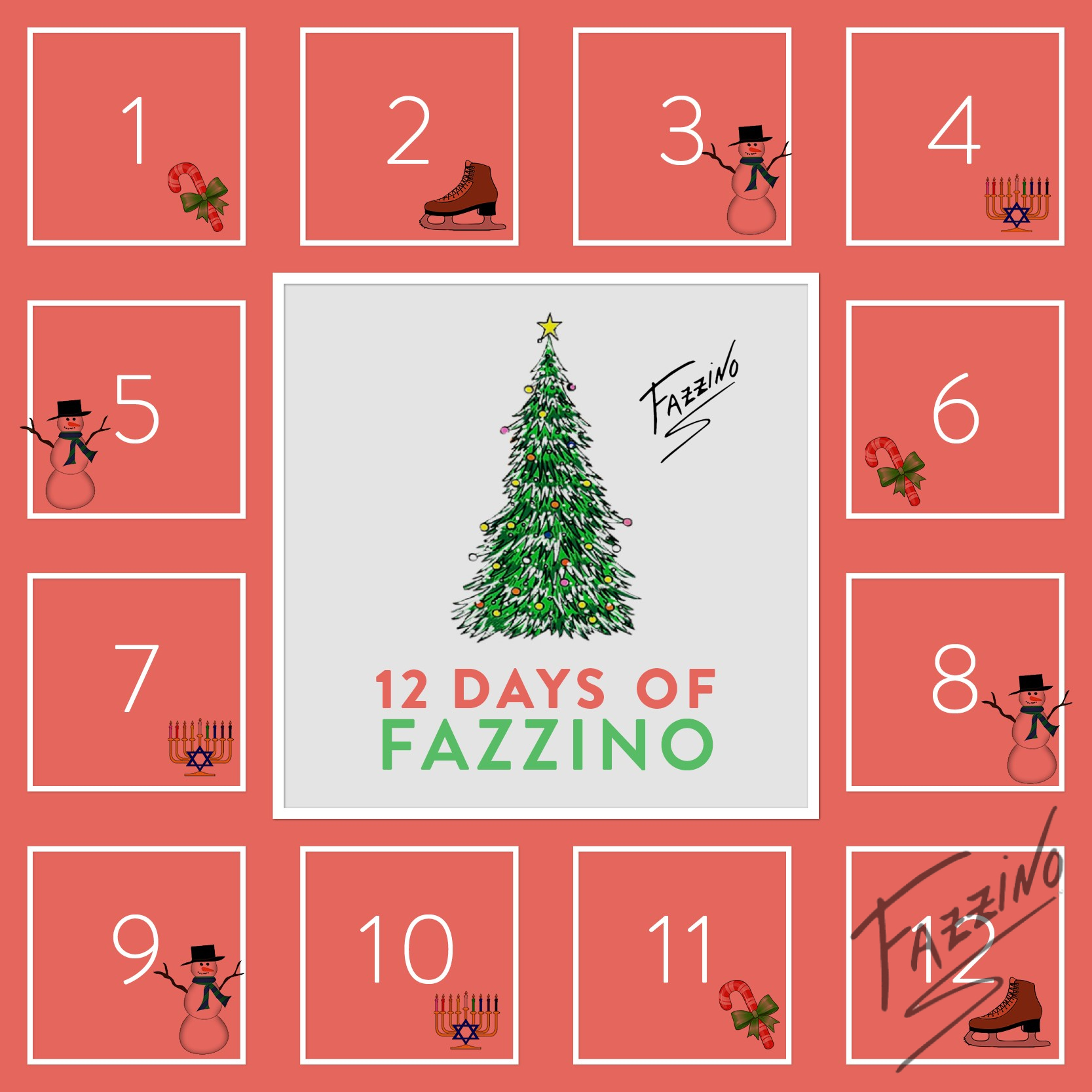 Look out for this 12 day calendar card on any of Fazzino’s social profiles. Attached will be a Trivia question that can be answered in the comments below! Everyday we will reveal the Featured Gift of the Day that’s up for grabs!