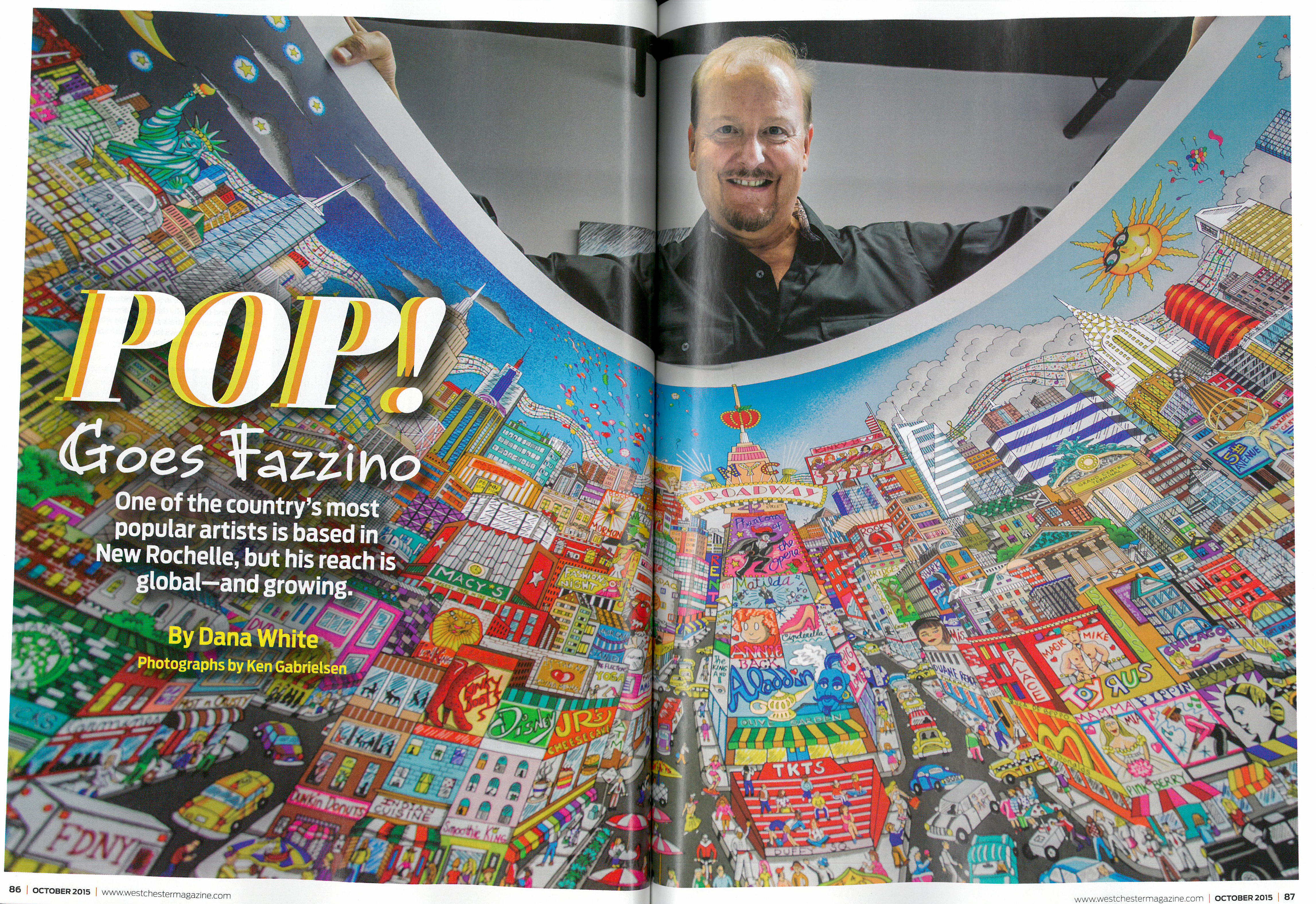 September 30, 2015 Westchester Magazine – Pop Goes Fazzino – October 2015 Westchester Magazine interviews Fazzino in the October 2015 edition about his work, art studio and his history in Westchester County (click on Picture for Full Article). URLThis field is for validation purposes and should be left unchanged.Enter Your Email* Δ