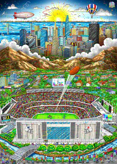 A Fazzino Limited Edition is an artwork reproduced in a limited number and signed by Charles Fazzino. In the edition, each piece is printed, and then cut, glued, and assembled by hand.
