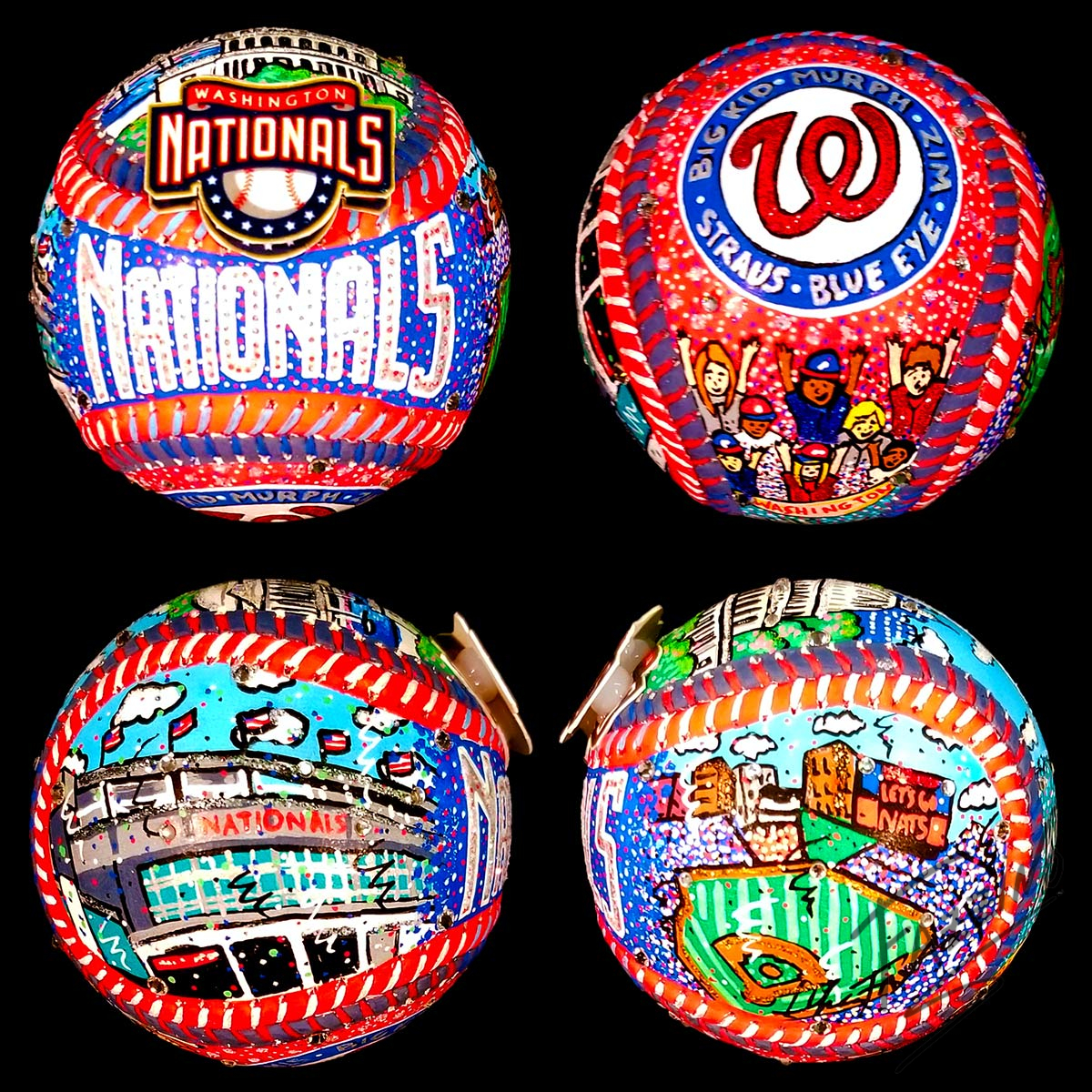 Fazzino’s hand-painted artwork on baseballs has become a favorite for sports collectors all over the world. Each piece can be custom made to order commemorating a favorite team, player, or event. Baseballs all come with deluxe display cases. Please inquire if you would like to see specific sample images.