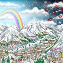 One of the most spectacular mountain ranges on earth, filled with snowy forests and the finest trails for skiing. Fazzino brings the Winter Wonderland that is the Swiss Alps to life in his signature 3D Pop Art fashion.
