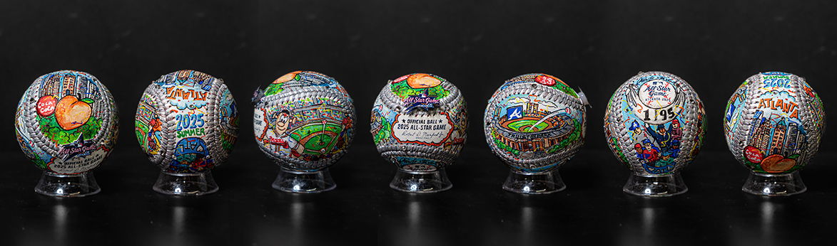 For every MLB All-Star Game Fazzino attends, he creates a one-of-a-kind 3D home plate with artwork based on that year’s All-Star Game. Every All-Star Game home plate he has created as been put on the field for the Ceremonial First Pitch of each game.
